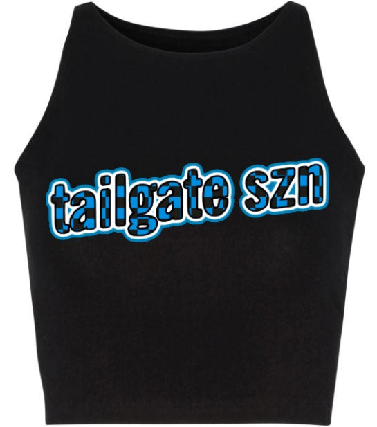- Our gorgeous Tailgate SZN Checks Crop Top has all the comfort of cotton spandex with a great fit and perfect style that works with so many of our pieces! Pair it with our amazing cheer skirts, sweatpants, skorts, and shorts.