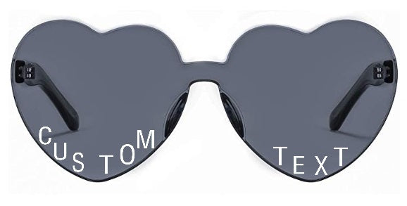 Our Custom Text Black Heart Sunglasses are the ultimate game day accessory! Personalize your pair with any message you would like, such as, your favorite team name, sorority or phrase! Lettering color is white, maximum of 7 letters per lens. Font is as shown.