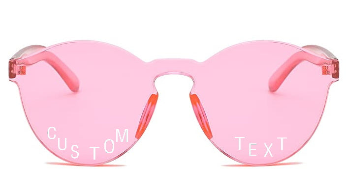 Our Custom Text Frameless Sunglasses are the ultimate game day accessory! Personalize your pair with any message you would like, such as your favorite team name, sorority or phrase! Lettering color is white, maximum of 7 letters per lens. Font is as shown.