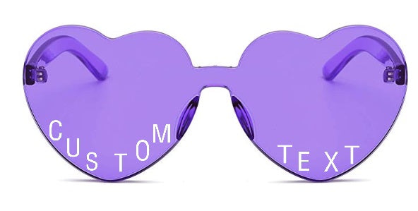 Our Custom Text Purple Heart Sunglasses are the ultimate game day accessory! Personalize your pair with any message you would like, such as, your favorite team name, sorority or phrase! Lettering color is white, maximum of 7 letters per lens. Font is as shown.