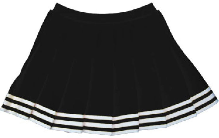 The look and fit of this gorgeous black & white pleated cheer skirt is fabulous! This pleated cheer skirt is made of high-quality moisture wicking 100% poly fabric, and you will love the way it pairs with our amazing crop tops, bodysuits, bandeaus and sweatshirts! An adorable white triple stripe detail gives it a super stylish game day vibe.