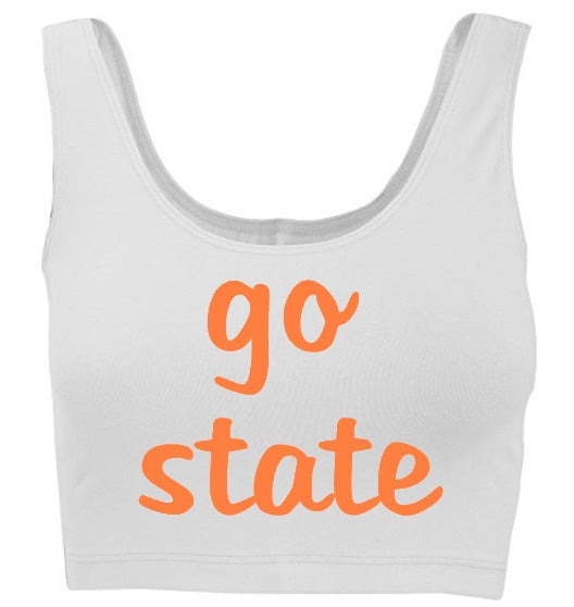 Our adorable Go State tank crop top offers great style with the versatility and comfort of cotton! Great fit with an adorable look, what more could you want in a crop top! This crop top is a best seller & our customers love the way it fits! Available in white & black!
